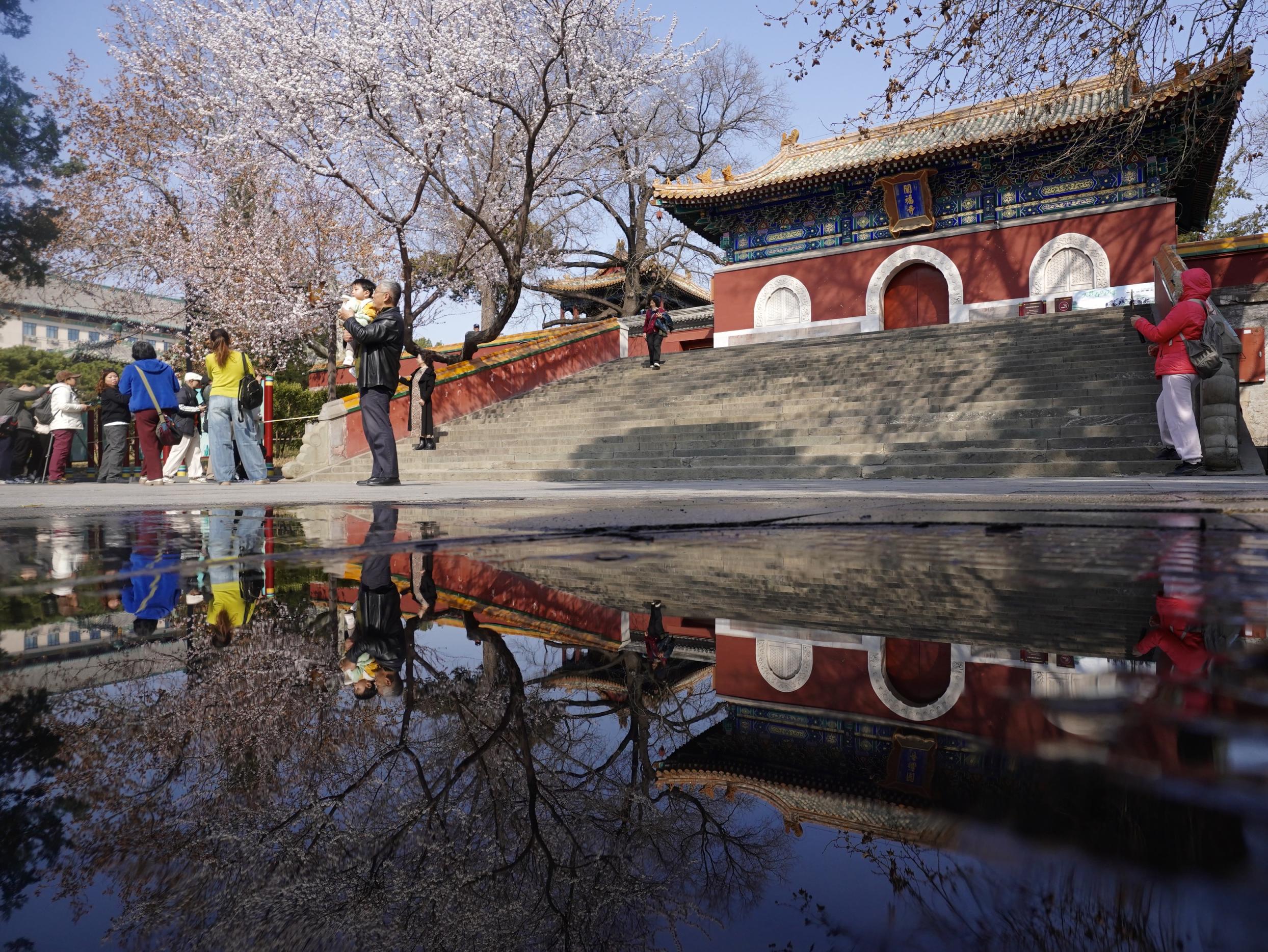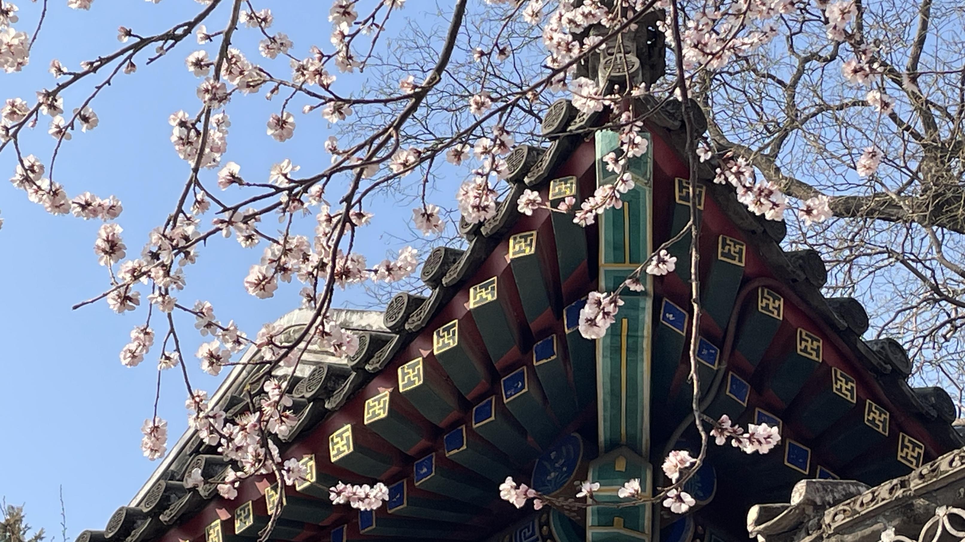 3月16日,春风轻抚,北海公园的山桃花正盛。山桃花在古建筑群中恣意地舒展着枝条,粉白的花枝在汉白玉栏杆间摇曳,欧美一区二区三区久久综合与巍峨的白塔、朱红的古建相映成趣,勾勒出京城经典的“山桃映白塔”画卷。空气中弥漫着淡淡的花香,让人真切地感受到,春天已经来到这座古老的园林。